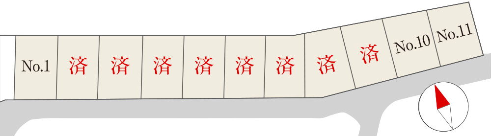 ◯所在地/福島県いわき市四倉町上仁井田字千歳地内◯交通/JR「四ツ倉駅」まで徒歩約7分◯用途地域/第一種中高層住居専用地域◯道路/南6.0m、アスファルト舗装◯設備/電気:東北電力、ガス:個別プロパンガス、水道:公営水道、汚水:個別浄化槽◯学区/いわき市立大浦小学校、いわき市立四倉中学校◯総区画数/11区画